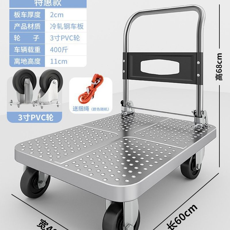 Steel plate truck Flat plate car Household trolley Thickened truck Folding trolley Pull goods Large portable trolley
