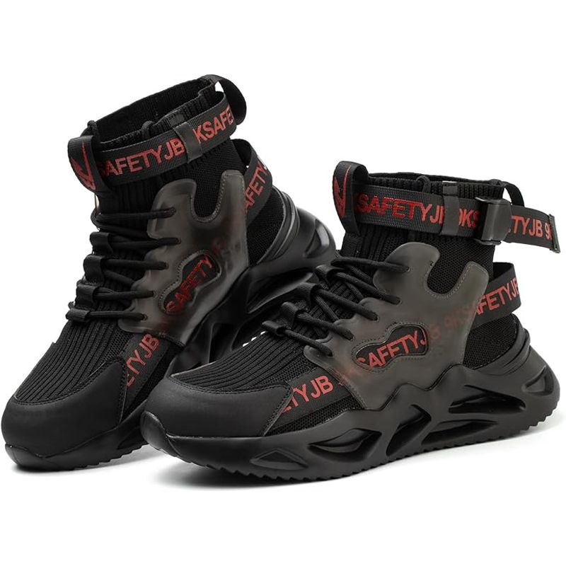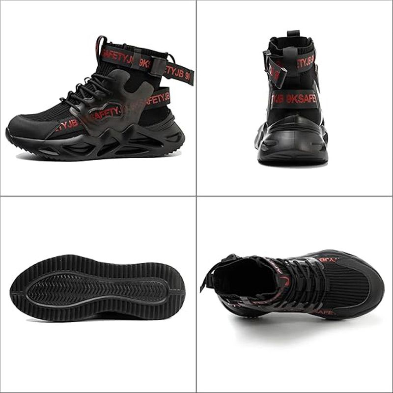 Super light safety shoe:It is like the weight of a pair of running shoes. They can help you to work happily all day without exhausting your feet. With super soft insoles and High elastic sole, your feet are safe and comfortable. Flying knit upper is very soft, Keep your feet comfortable and breathable.