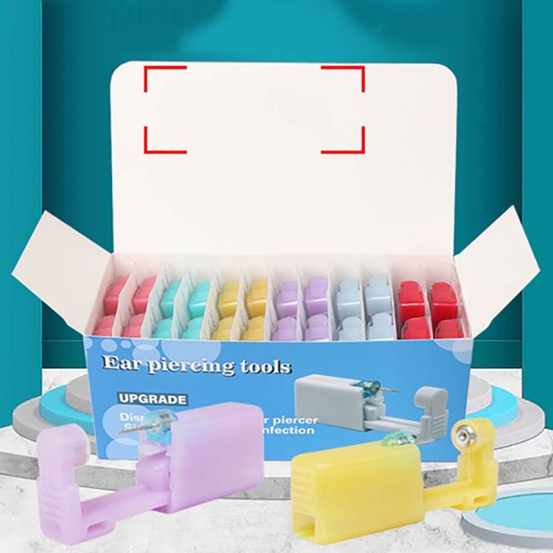 Package includes: 1 set of ear piercing artifact (1 pcs random color ear piercing tool + 1 pcs ear stud)