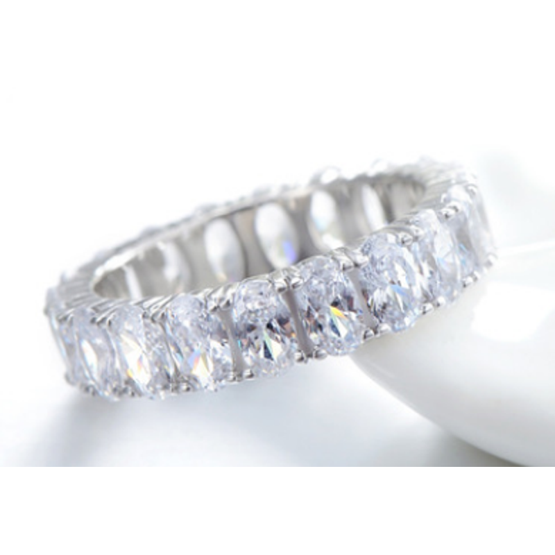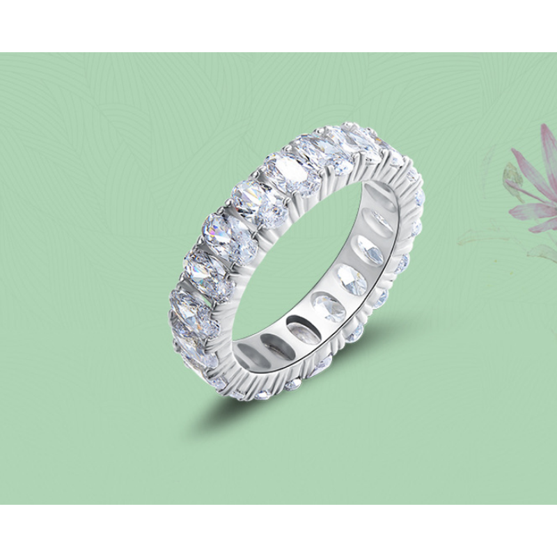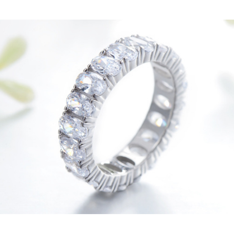 Sterling Silver Luxury Full Diamond Egg-Shaped Ring Female Fashion Luxury All-Match Closed Ring Silver US9