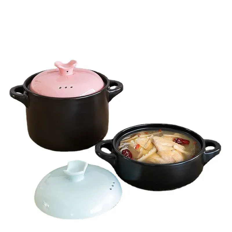 Stewpan with Lid Ceramic Soup Pots Stewpot Stewing Saucepan Casserole Ramen Bowl Enameled Cooking Pot for Kitchen Cookware
