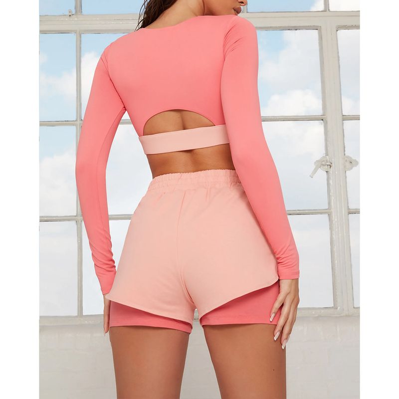 Stitching Contrast Color Fitness Sports Suit Apricot Shorts S