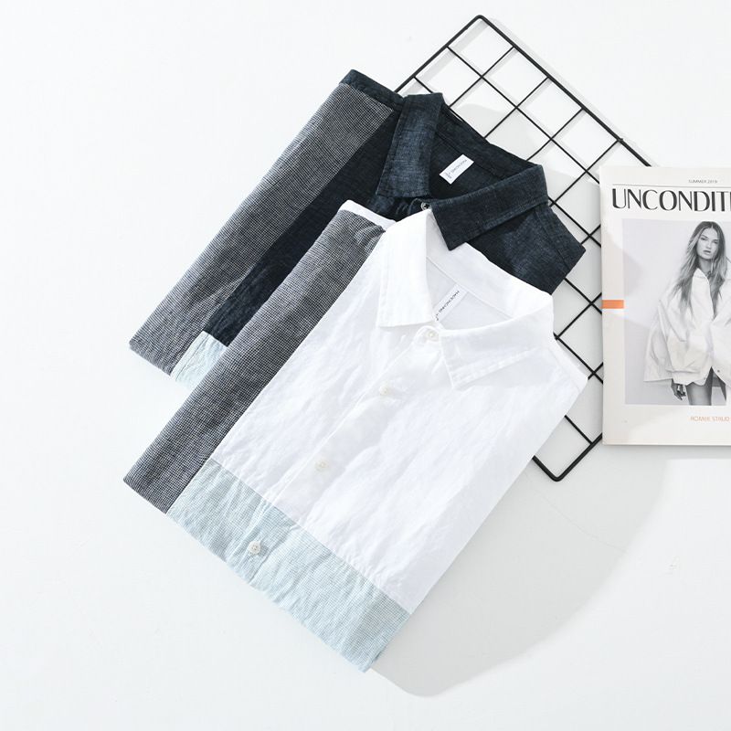 Stitching Contrast Color Long Sleeves Shirt Men White XXL