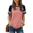 Stitching Faded Short-sleeved Ladies Casual T-shirt Pink 2XL