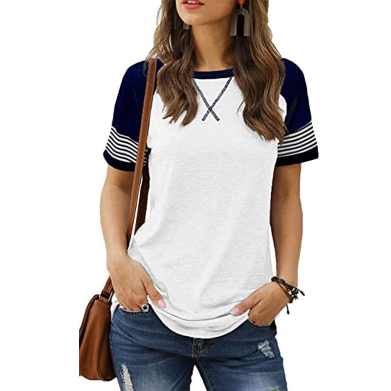 Stitching Faded Short-sleeved Ladies Casual T-shirt White 2XL