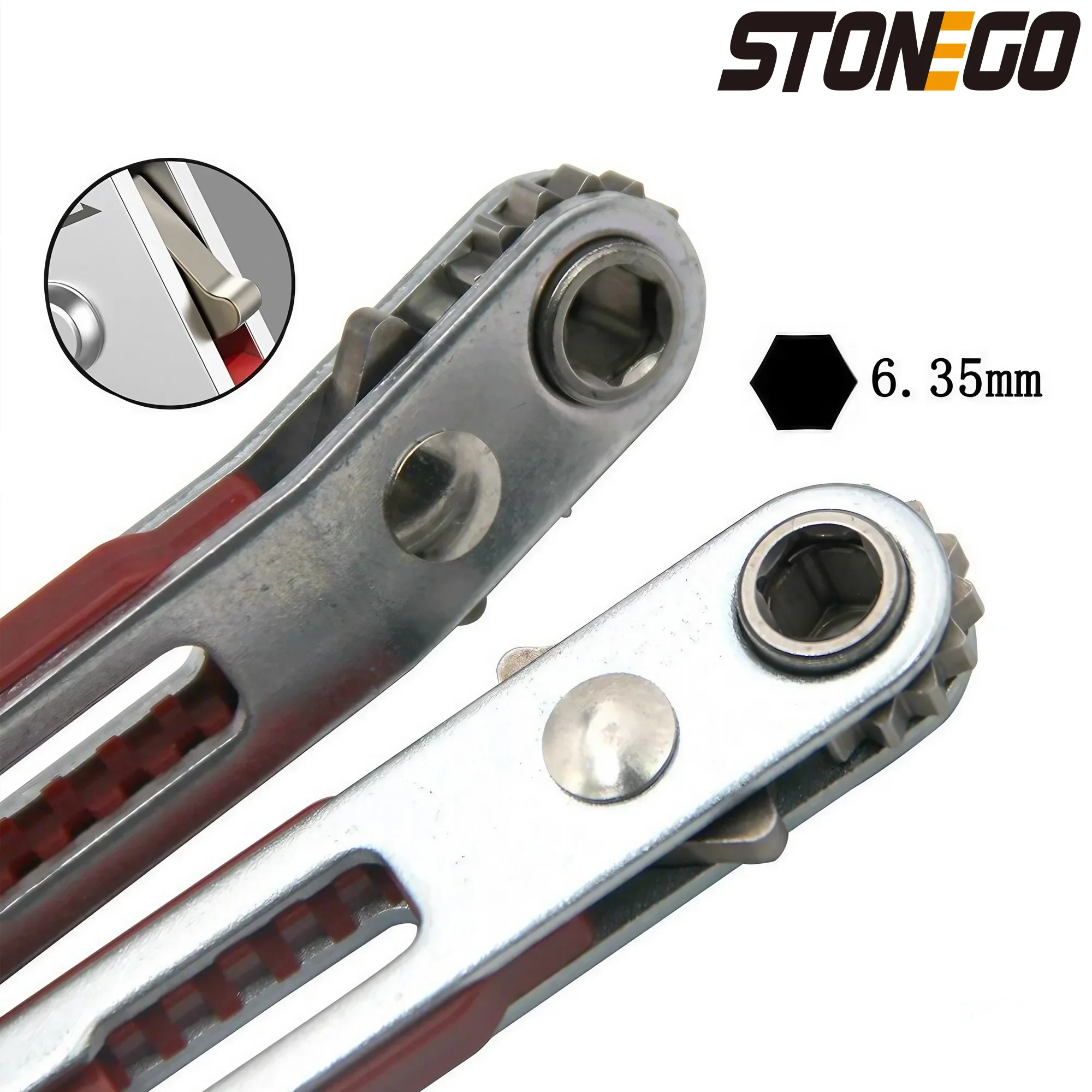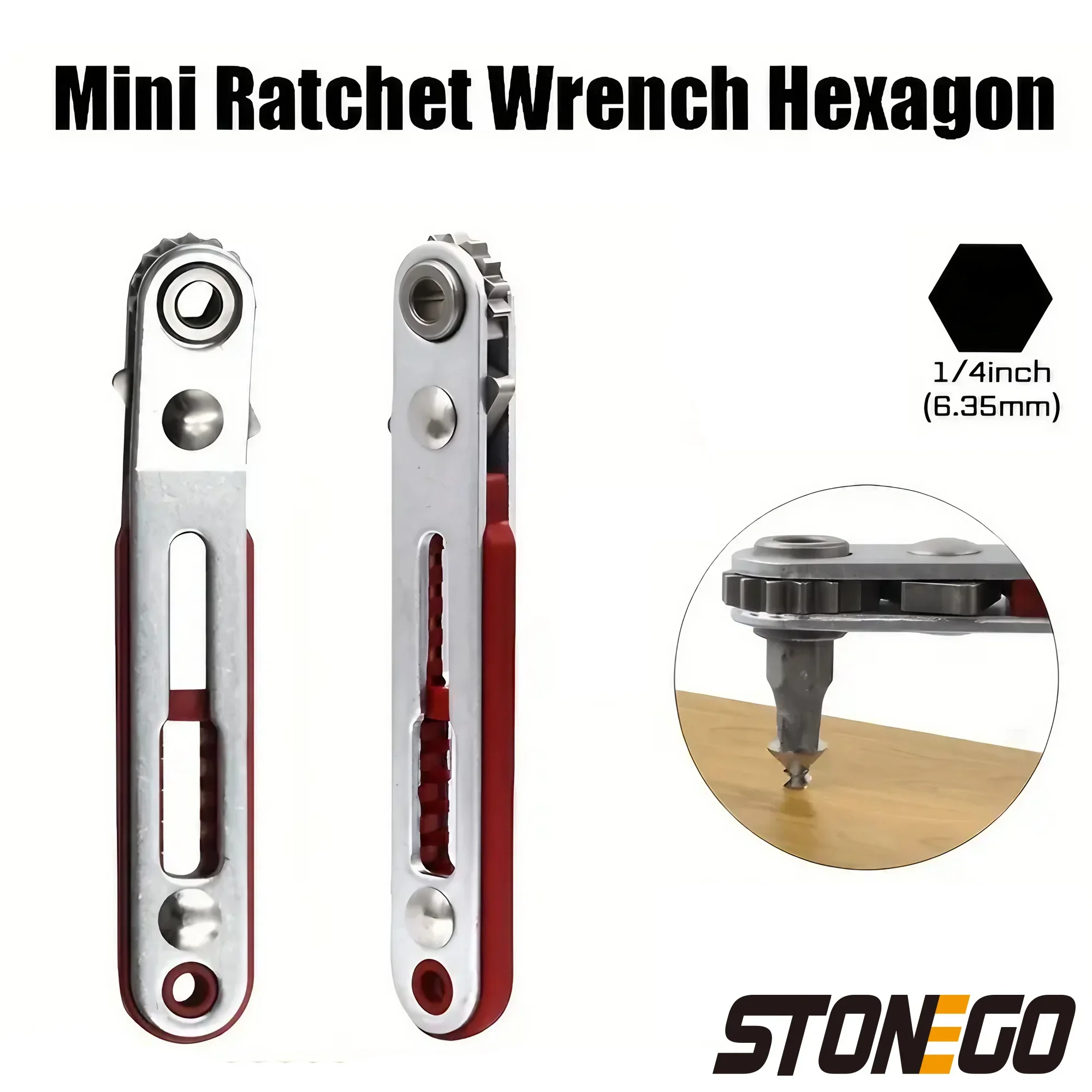 STONEGO Mini Double Headed Ratchet Wrench 1/4 Inch Drive Socket and Screwdriver Bit Driver Quick Release Ratchet Wrench