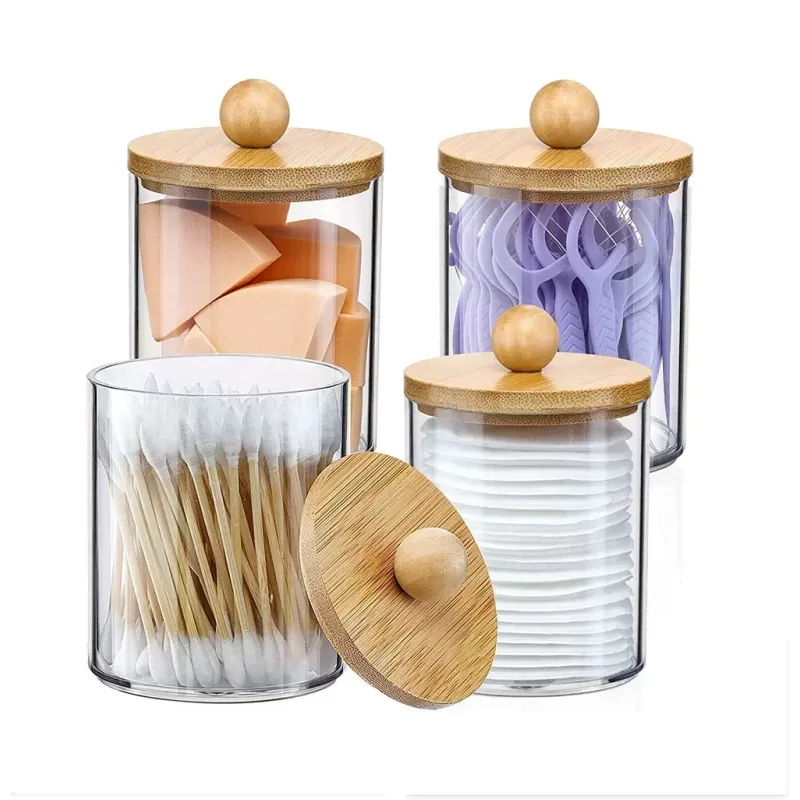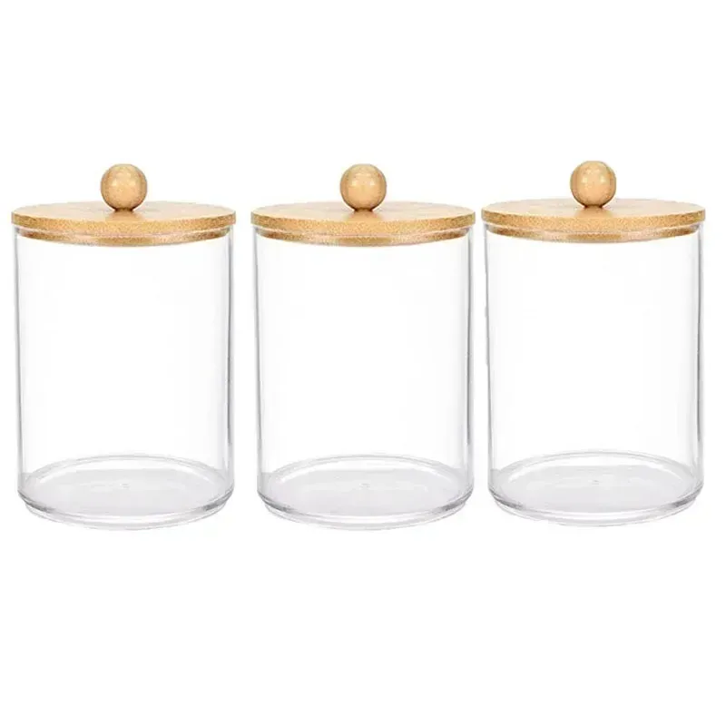 Storage Organizer Holder Canister Apothecary Jars with Lid for Cotton Rounds Acrylic Cosmetic Candy Snacks Desktop Storage Box