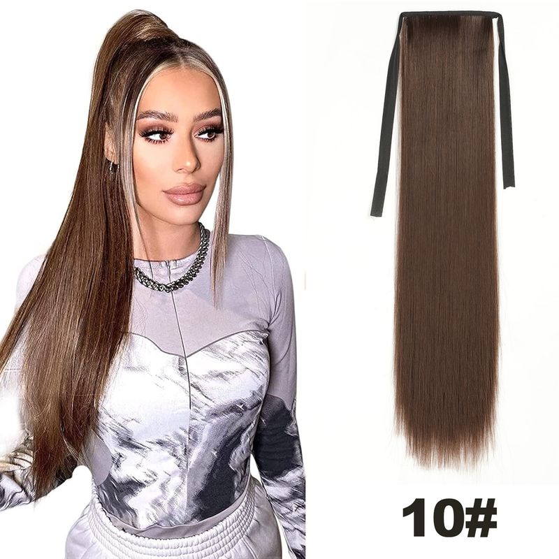 Straight Long Ponytail Extensions 22inch Natural Black Wrap Around Synthetic Hair Piece Pony Tail Hair Hairpieces for Women Girl