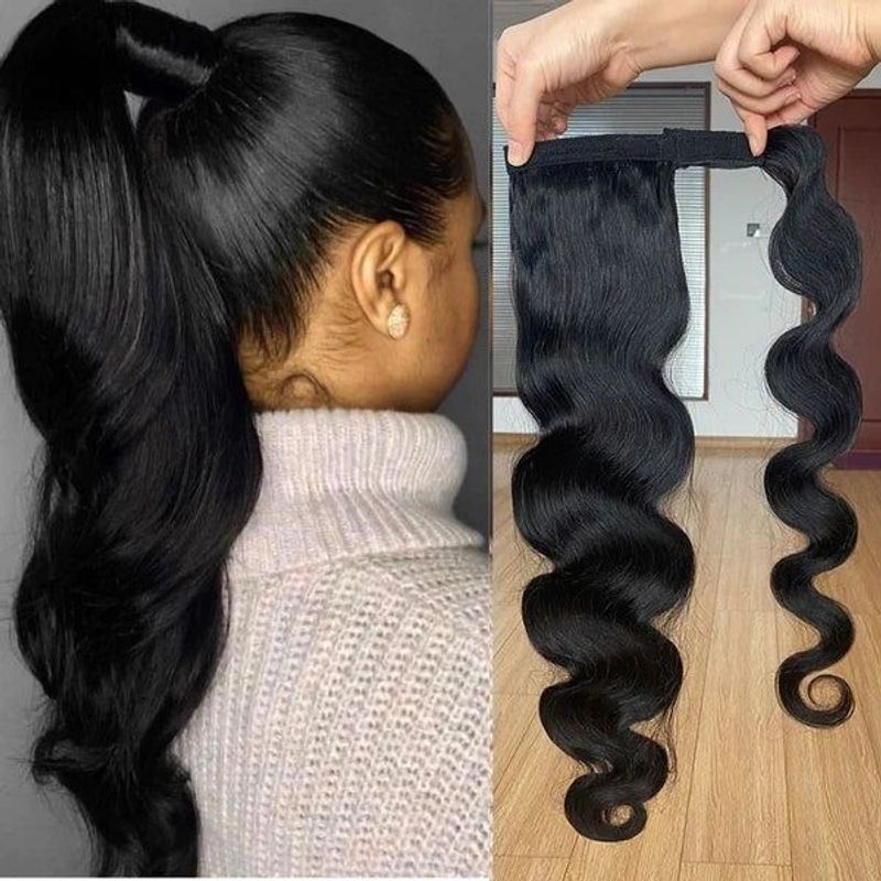 Straight Ponytail 10-32 Inches Machine Made Magic Wrap Around Clip In Ponytail Black Remy Curly Brazilian Human Hair Extensions