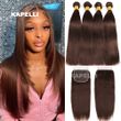 Straight Weaving Human Hair Extensions Brown Bundles With 13x4 Lace Frontal Brazilian Human Weaves Hair Closure 4x4 HD Lace