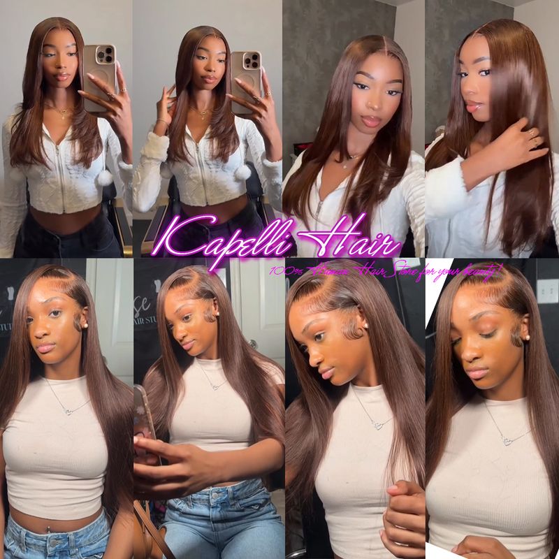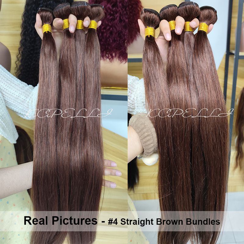 Straight Weaving Human Hair Extensions Brown Bundles With 13x4 Lace Frontal Brazilian Human Weaves Hair Closure 4x4 HD Lace