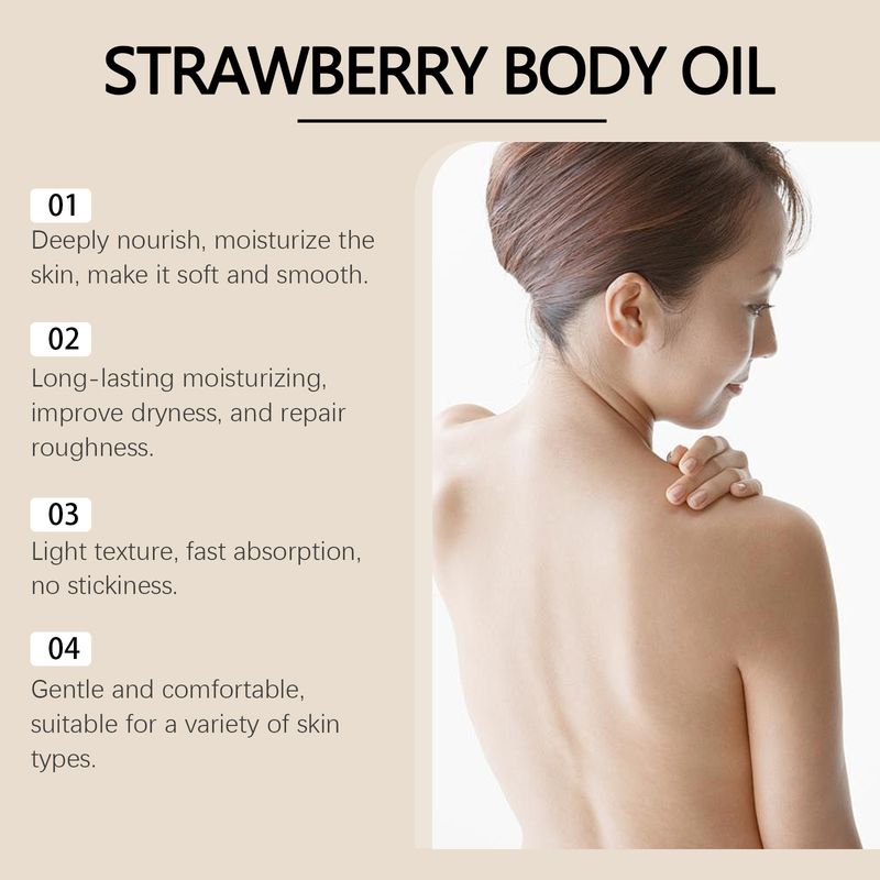 Ingredients: mineral oil, strawberry extract, olive oil, hyaluronic acid, vitamin E (tocopherol)