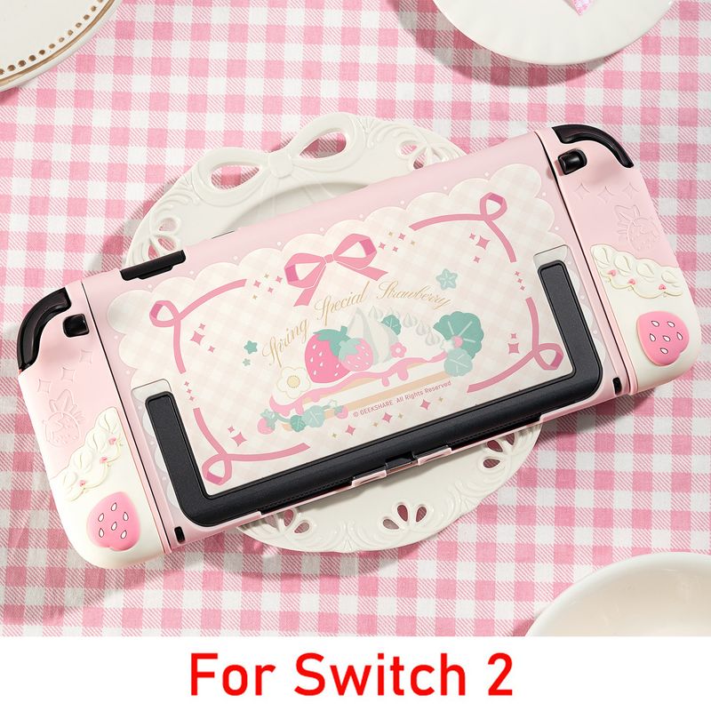 Strawberry Hard Back Case Shell Protector For Nintendo Switch 2/NS Oled Joy-Con Controller Hand Grip Buttons Silicone Full Cover