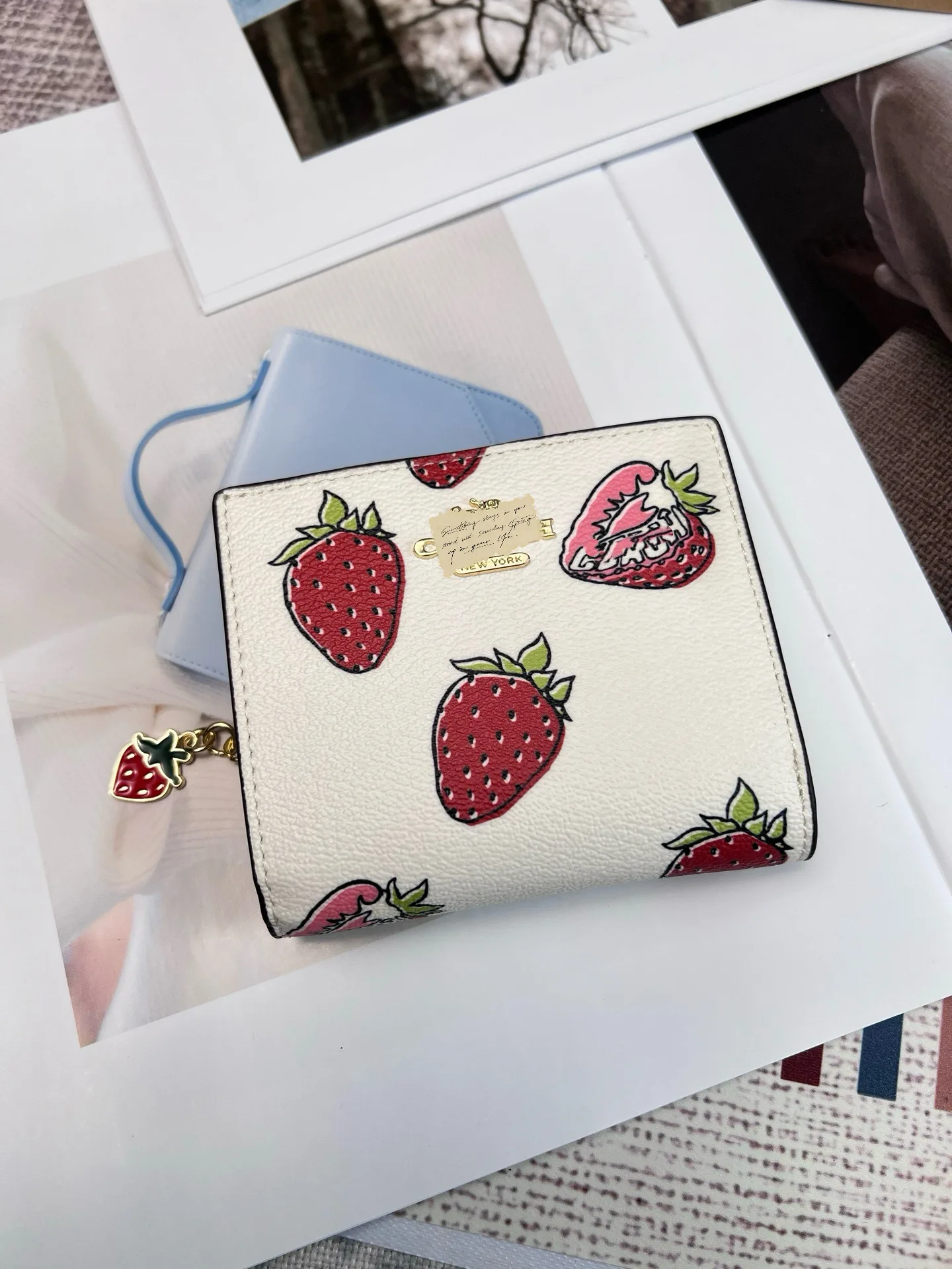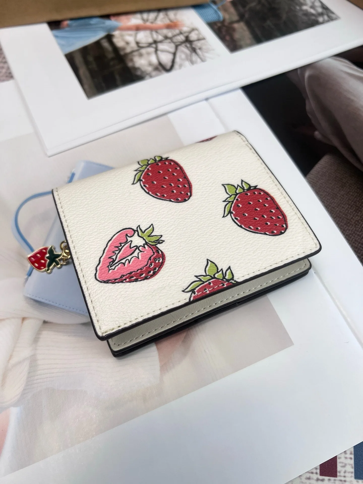 Featuring a charming strawberry print with floral elements, it adds a touch of femininity and style.