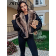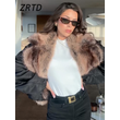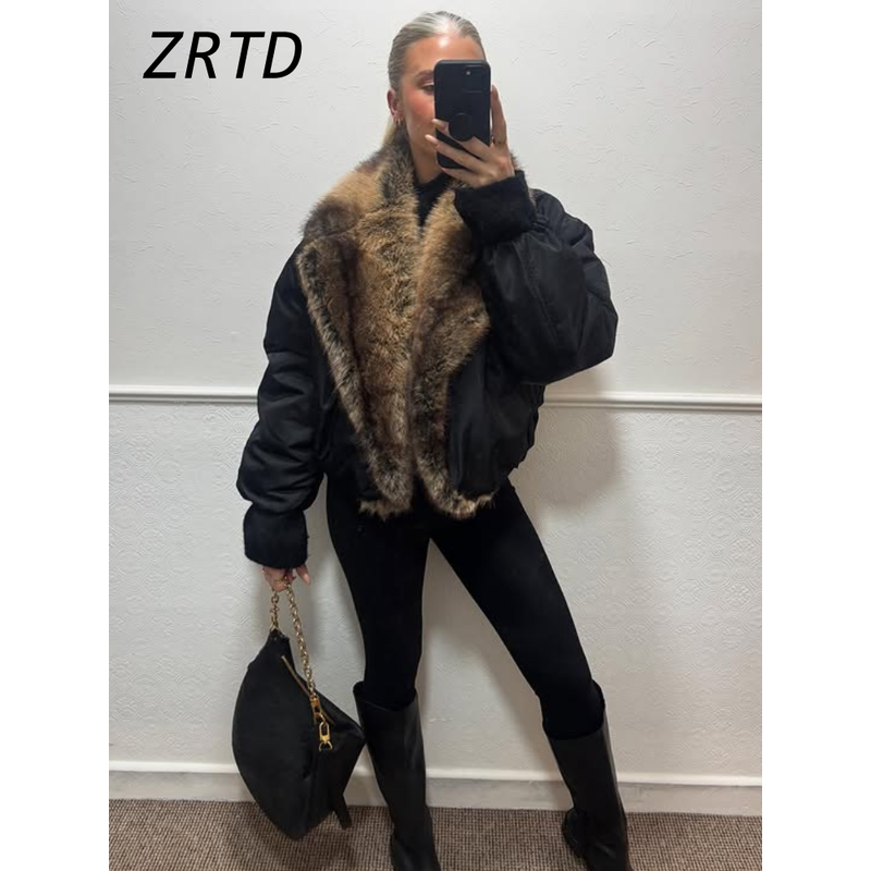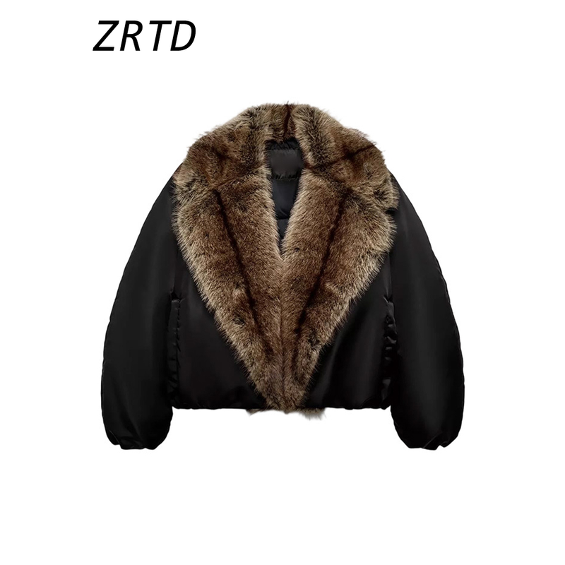 Street Faux Fur Patchwork Cropped Coats Women Loose Lapel Full Sleeve Pockets Warm Jackets 2025 Winter Lady Fashion Outwear