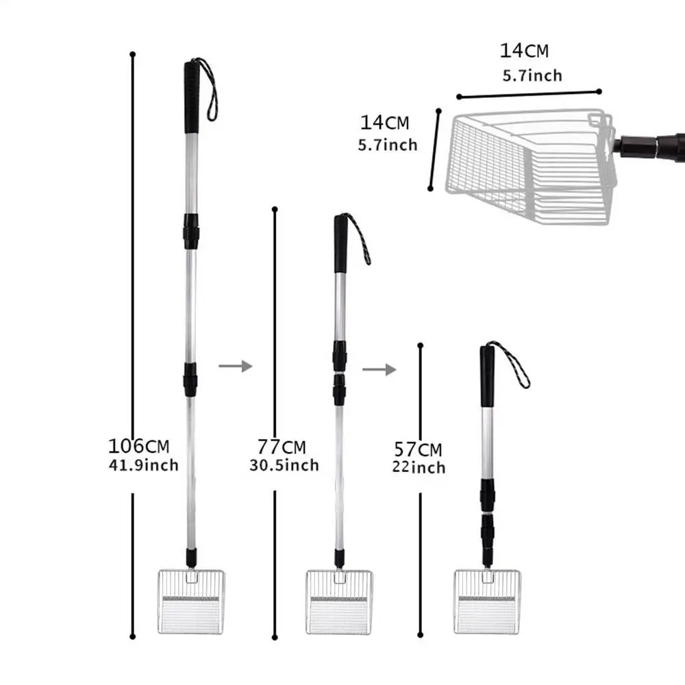 length about 106cm/41.73 inches(retractable), scoop part about 14x14cm/5.51x5.51 inches