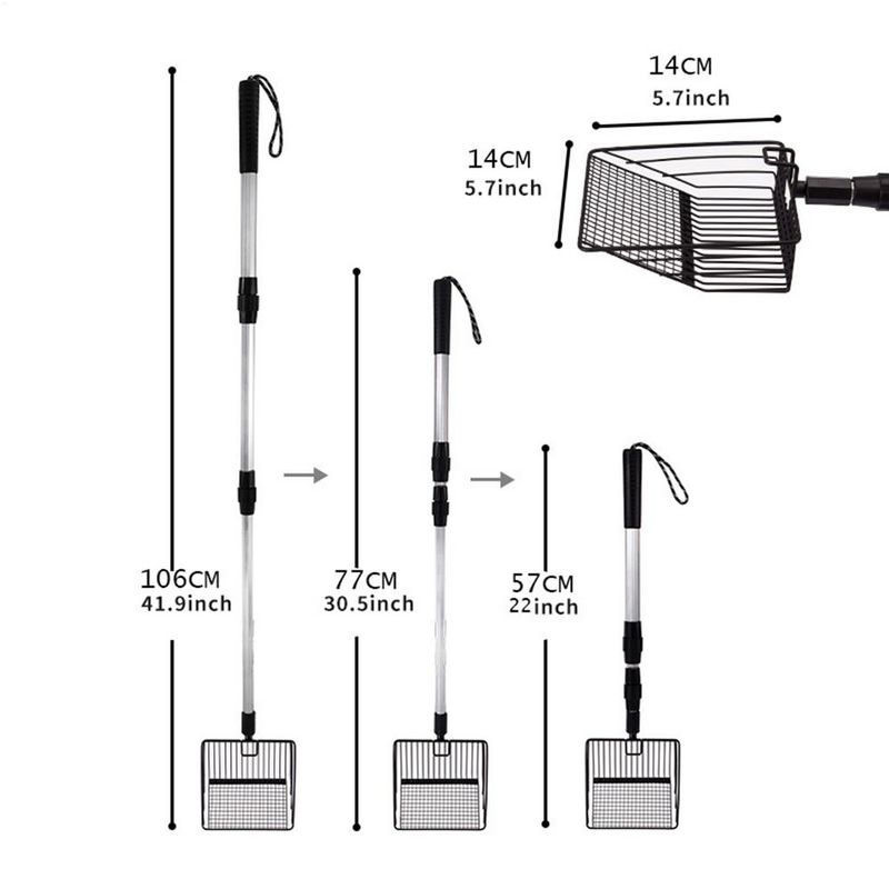 2.Telescopic Handle: Make cleaning up chicken poop a breeze with our versatile scooper! Its telescopic handle can be adjusted to three different lengths, allowing you to achieve the perfect handle size for your comfort and work efficiency