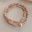 Stringed Pearls Double Ring Bracelet For Women Light Luxury Minority Pink