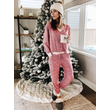 Striped Color Contrast Patchwork V-neck Long Sleeve Trousers Suit Red S