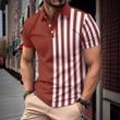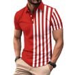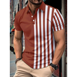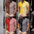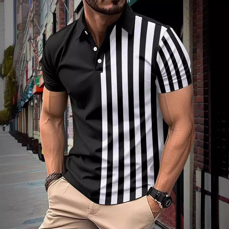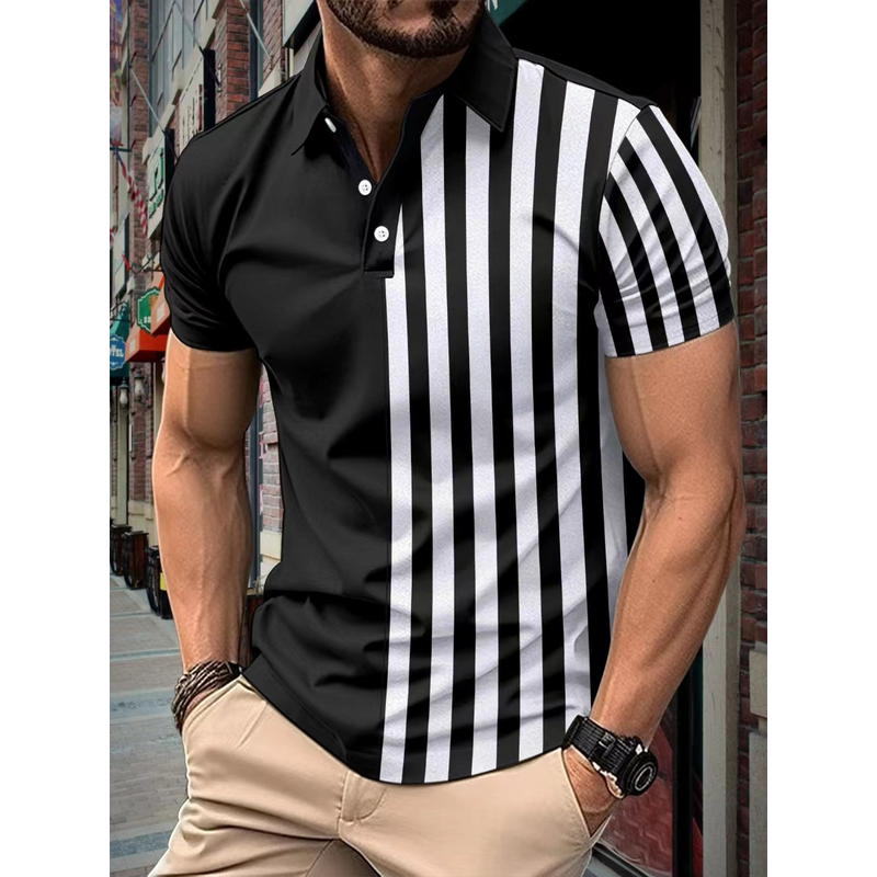 Striped Printing Lapel Polo Shirt Men Black XXXL