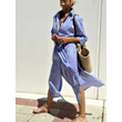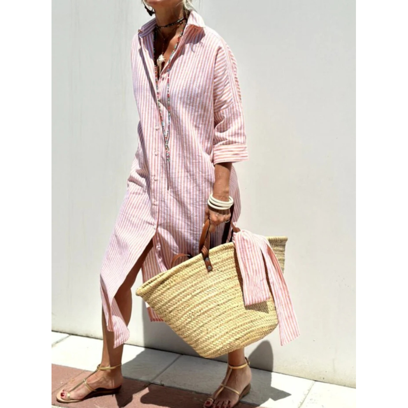 Striped Shirt Dress With Belt Fashion Half-sleeved Lapel Button Cardigan Dresses Women's Clothing Khaki XS