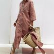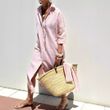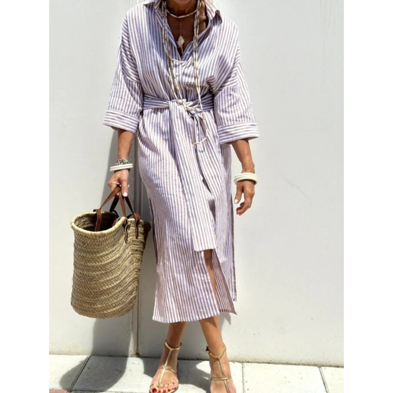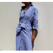 Striped Shirt Dress With Belt Fashion Half-sleeved Lapel Button Cardigan Dresses Women's Clothing Red M
