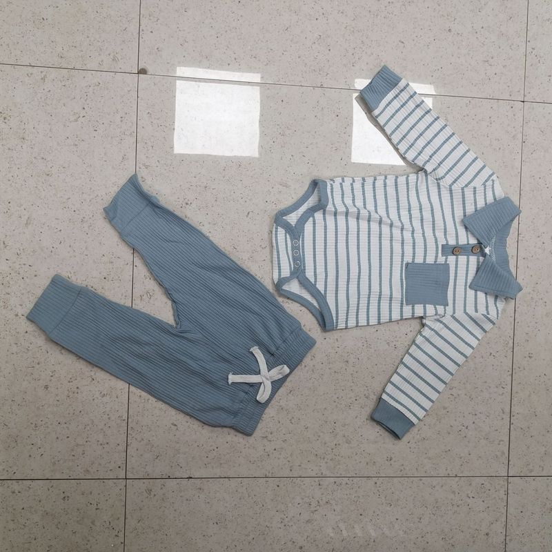 Striped Sunken Stripe Long Sleeve Trousers Suit Blue 12 to 18M