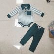Striped Sunken Stripe Long Sleeve Trousers Suit Dark Green 9 to 12M