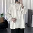 Striped White Shirt Men's Shirt Long Sleeve Casual Black 2XL