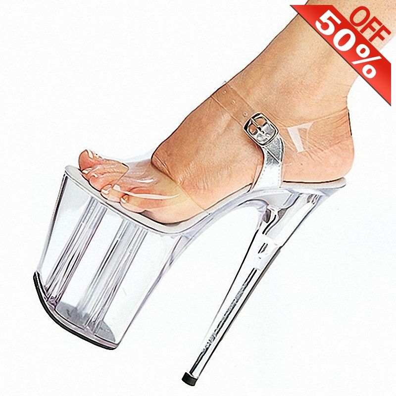 Stripper Cross dressing 20CM crystal transparent sandals platform pole dancing wedding shoes 8 inches high heel lady fashion sex