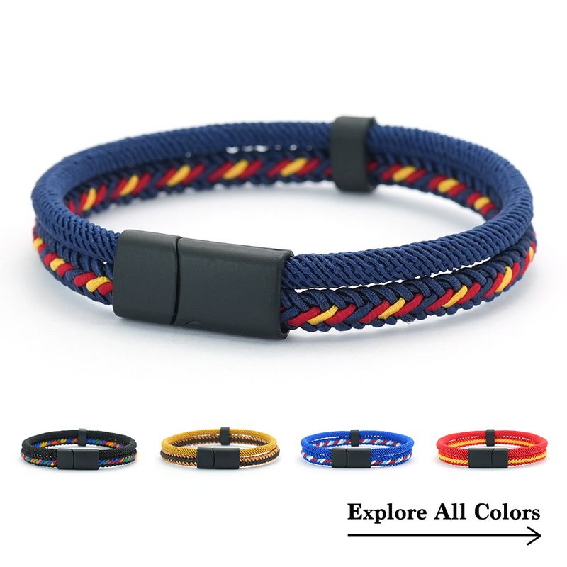 Stylish Charm Rope Bracelets for Men Wrap Braclet Double Weave Magnetic Clasp Outdoor Camping Braslets for Him