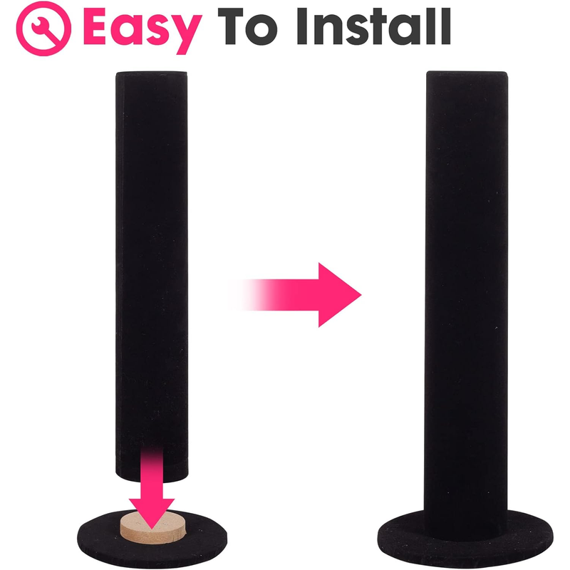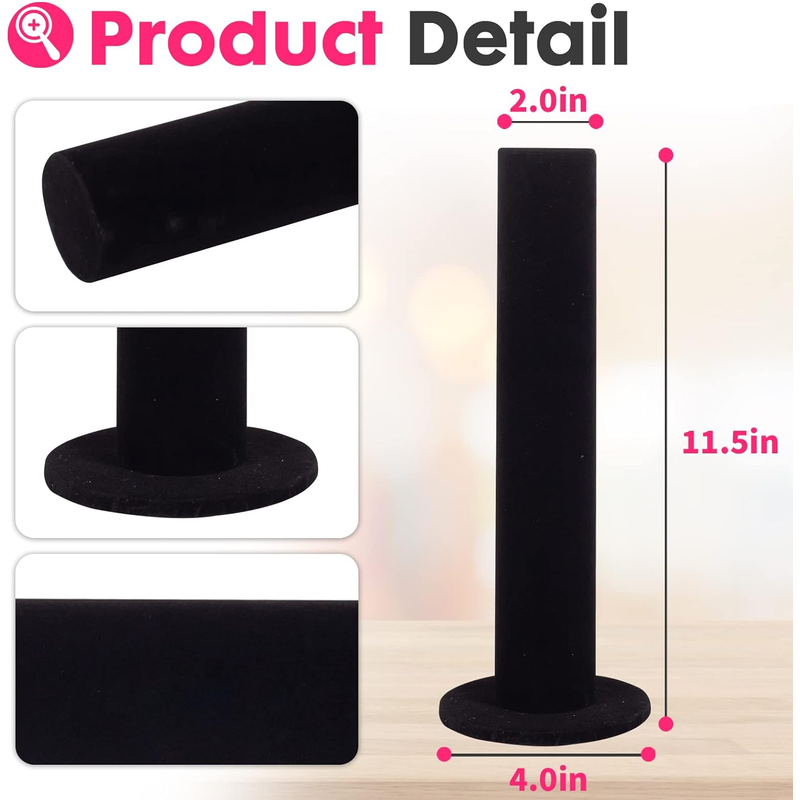 [Detachable]: This scrunchies stand measures 11.5 x 4 inches. Thicken Rod - 2" Diameter. Removable design, super easy to install and portable. Sturdy base prevents them from falling. Velvet covering prevents hairband from scratches and damage. Exquisite artificial processing technology, really stable and durable!