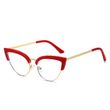 Stylish Large Frame Metal Lower Half Metal Plain Glasses Red Frame Transparent Lens