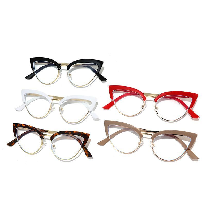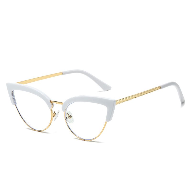 Stylish Large Frame Metal Lower Half Metal Plain Glasses White Frame Transparent Lens