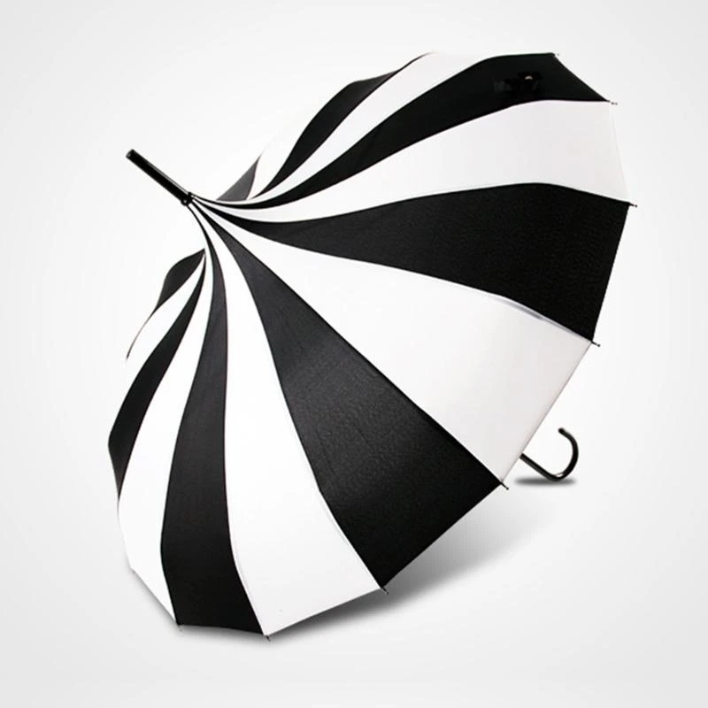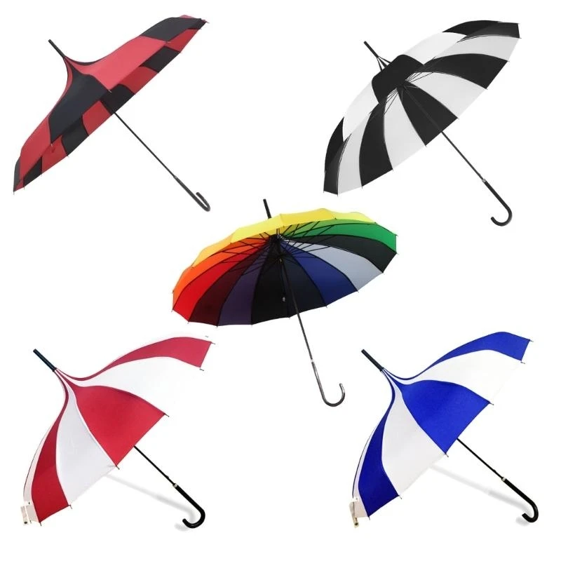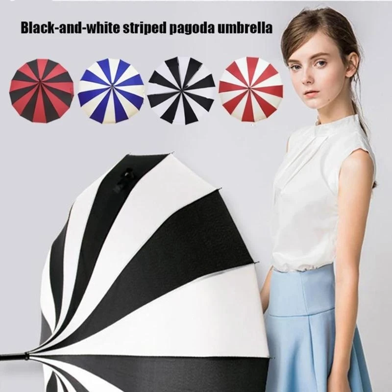 Stylish Pagoda Umbrella Fashionable Long Handle Sun Rain Windproof Striped Pagoda Umbrellas,Stylish Striped Designs 16 Ribs