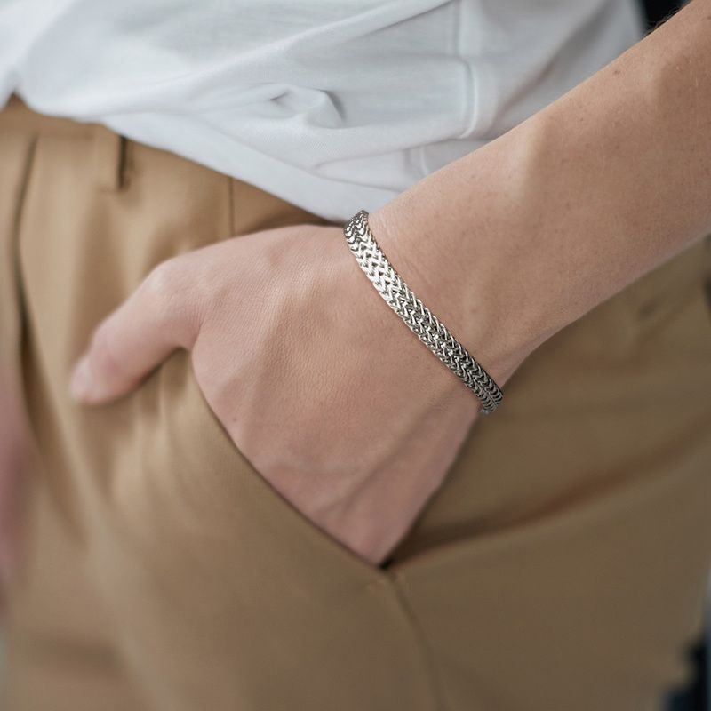 Stylish Stainless Steel Bali Foxtail Chain Bracelet for Men,Double Franco Link Chain Bracelets,Armband Male Jewelry