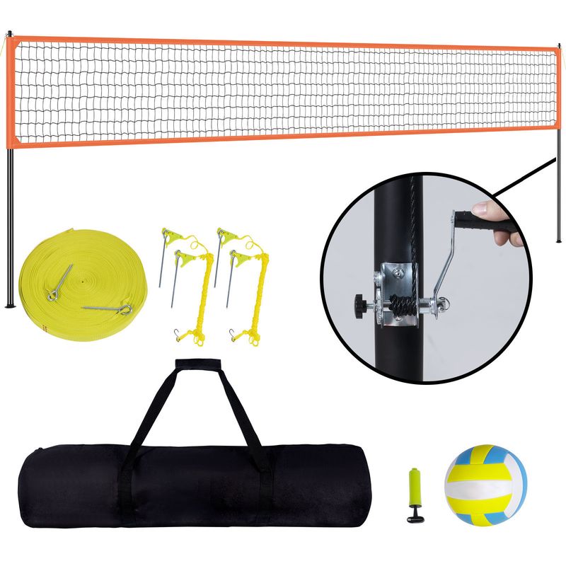 • Abundant Accessories: The heavy duty volleyball net set includes 1 standard 32x3 feet volleyball net, 6 powder-coated aluminum poles, 1 PU volleyball, 1 ball pump with 2 needles, 4 guy ropes with 4 8-inch long metal stakes, 1 boundary equipped with 4 metal stakes, 1 user manual, and 1 portable 600D carry bag.