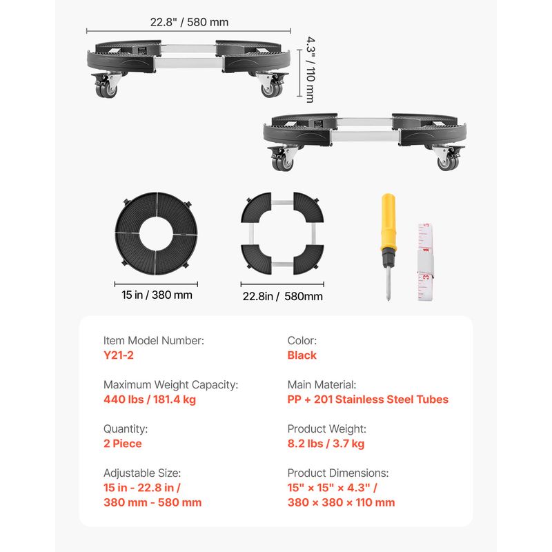 SucceBuy 1/2Packs Trash Can Dolly 400 lbs Round Roller Base 15-22.8in Adjustable with 4 Lockable Wheels Plant Caddy Rolling Cart