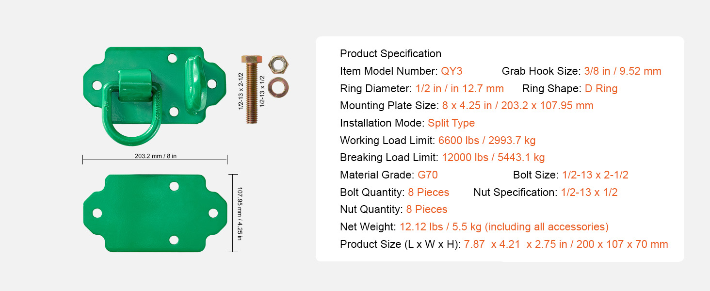 High Load Capacity:Constructed from G70 high-strength steel, these hooks have a robust design that can accommodate various sizes and weights. With a maximum load capacity of 12,000 lbs, they make towing tasks for trailers effortless and quick.