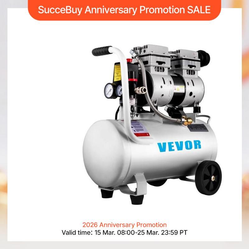 SucceBuy 25/60L Air Compressor 110V/240V Oil-Free Air Compressor 750W1 HP For Home Repair Tire Inflation Whisper Compressor
