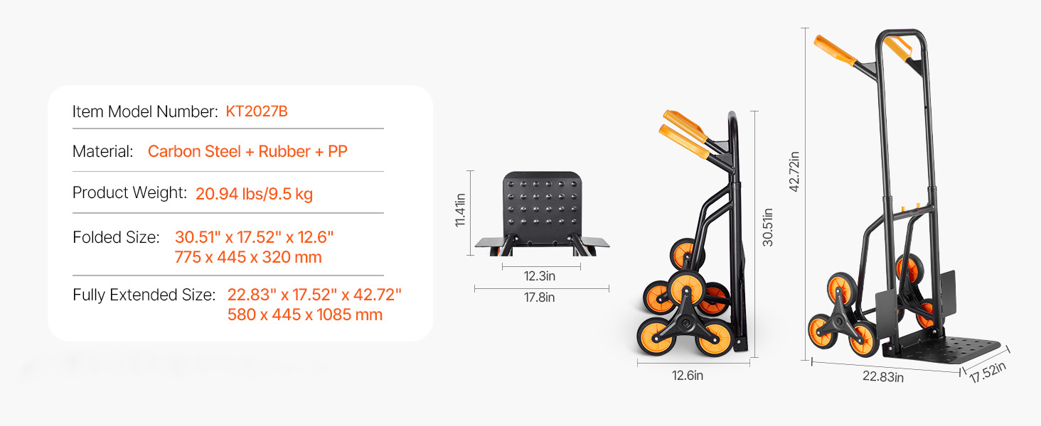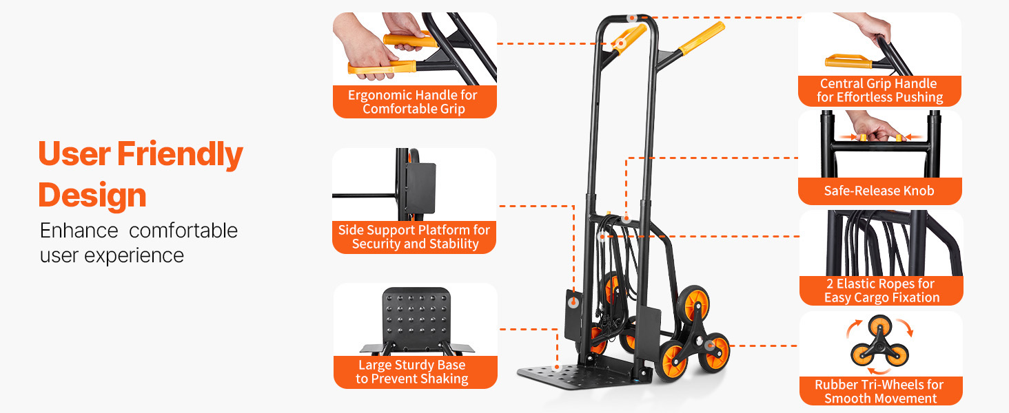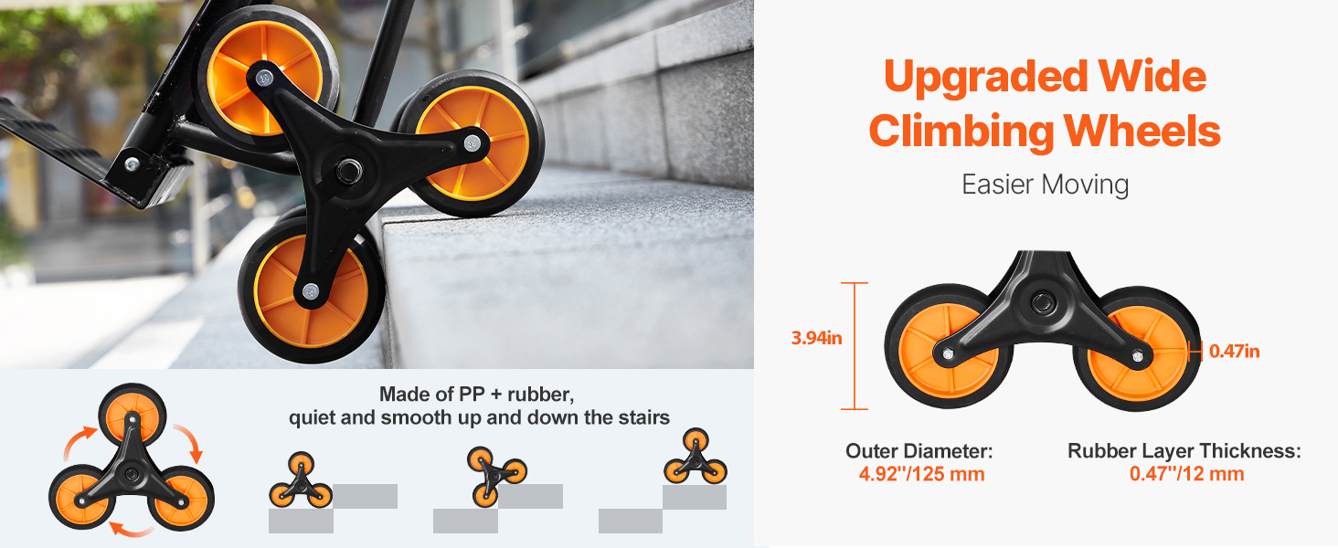 Effortless Pushing:The stair climbing cart has 6 sturdy wheels for easy movement on different surfaces.