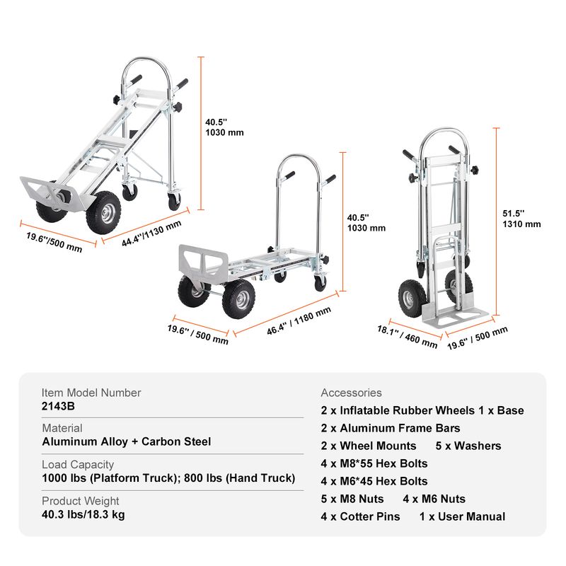 • High Load Capacity: Ready for some heavy lifting? Meet your new best friend. With a hearty weight range of 250 to 400 pounds, this hand truck won't break a sweat for hauling, carrying, or transporting. Platform Truck Mode Size: 15.1"L x 42.3"W x 34.1"H; Hand Truck Mode Size: 15.1"L x 15.8"W x 42.3"H.