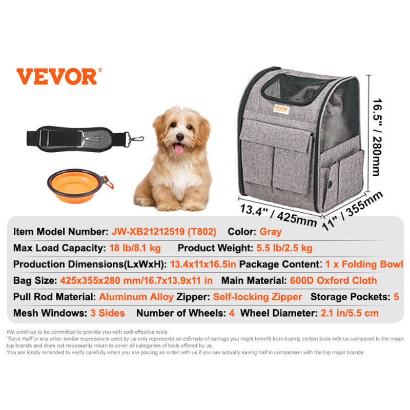 • With multiple carrying options, including hand-held, backpack, shoulder strap, or rolling with the adjustable aluminum alloy pull rod, this carrier adapts to your needs. The self-locking zipper keeps your pet secure, while the detachable Velcro allows for easy storage and carrying.