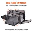 • This pet carrier expands on both sides to offer extra space, ensuring your pet's comfort during travel. The four-sided mesh windows provide excellent ventilation and visibility. Additionally, padded back and shoulder straps enhance comfort on long trips, and the small side pocket conveniently stores pet supplies and a portable pet bowl.