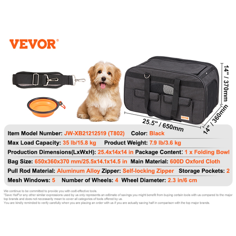 • Built from durable 600D Oxford fabric, this carrier can support small pets up to 25 lbs, ensuring long-lasting use. It’s ideal for car trips, vet visits, and other adventures with your furry companion.