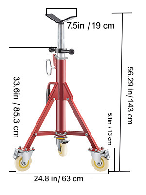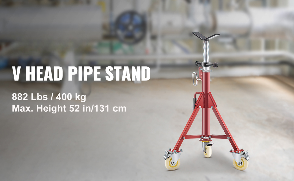 Adjustable Construction: This pipe jack stand offers adjustable height from 28"/71 cm to 52"/131 cm, accommodating various needs. Its durable V-head can support pipes ranging from 1/8 to 12 inches (0.32 to 30.48 cm).