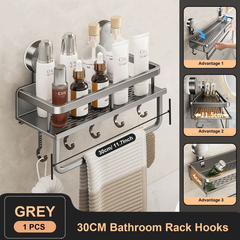 Suction Cup Bathroom Rack Bathroom Shelf Toilet Space Aluminum No Drill Hanging Rack Bathroom Organizer Hang On the Wall