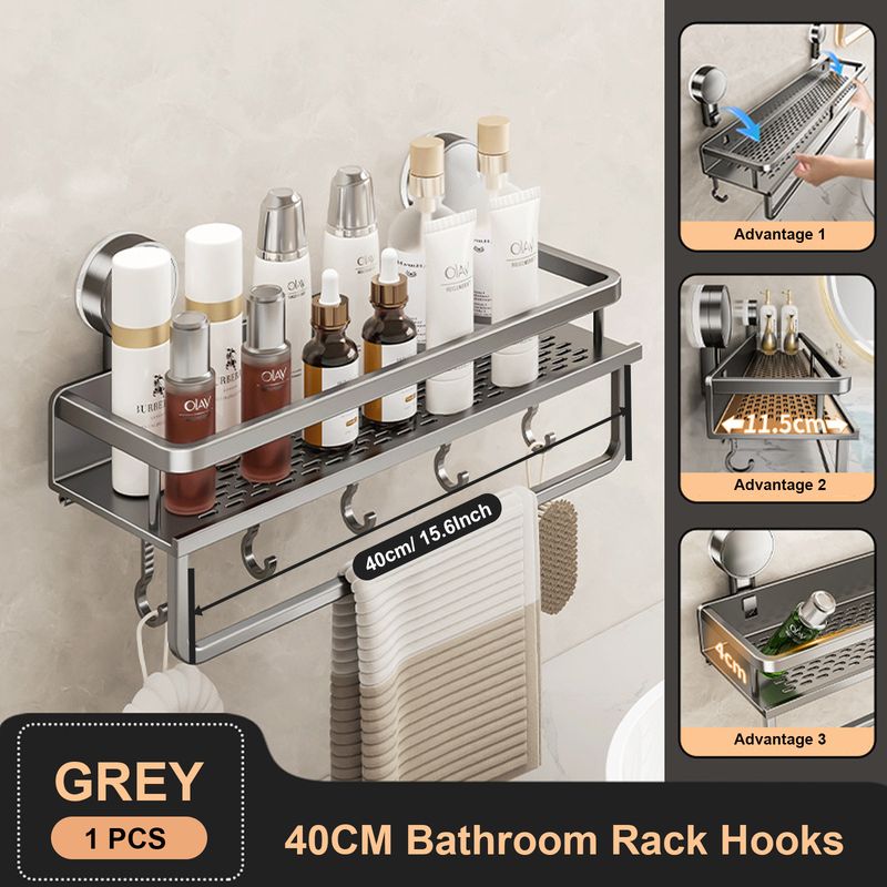 Suction Cup Bathroom Rack Bathroom Shelf Toilet Space Aluminum No Drill Hanging Rack Bathroom Organizer Hang On the Wall