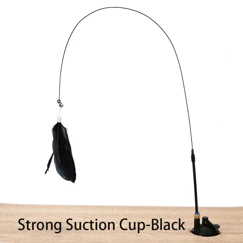 Interactive Cat Toy Handfree Cat Stick Small Bell Extended Rod Suction Cup Durable Bite Replaceable Feather Head Pet Supplies