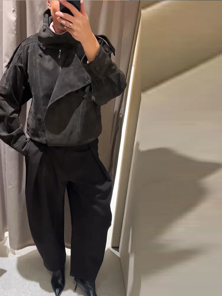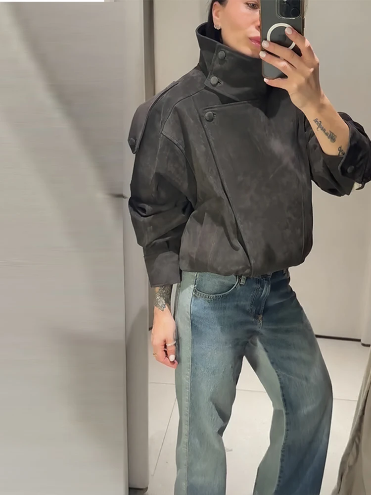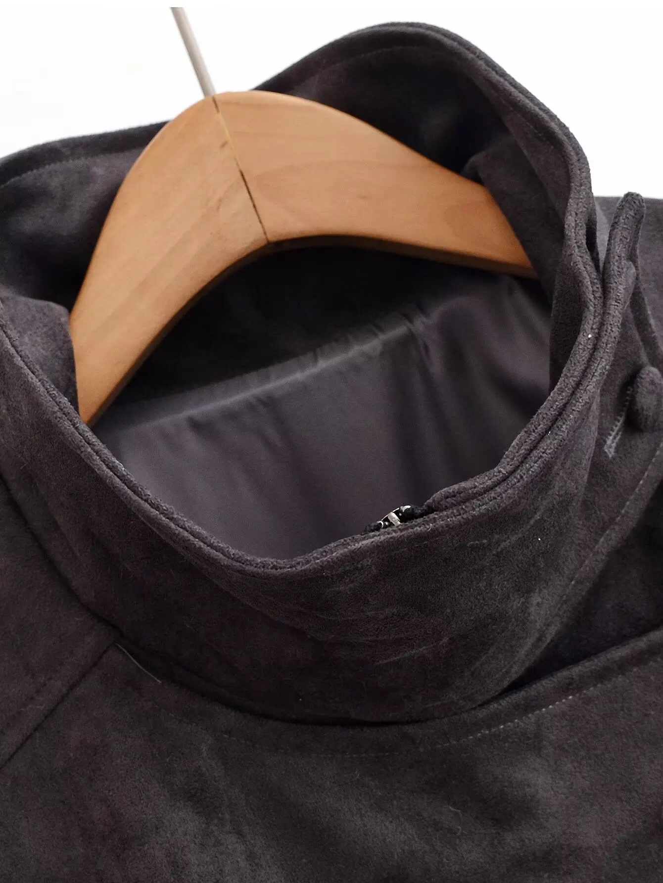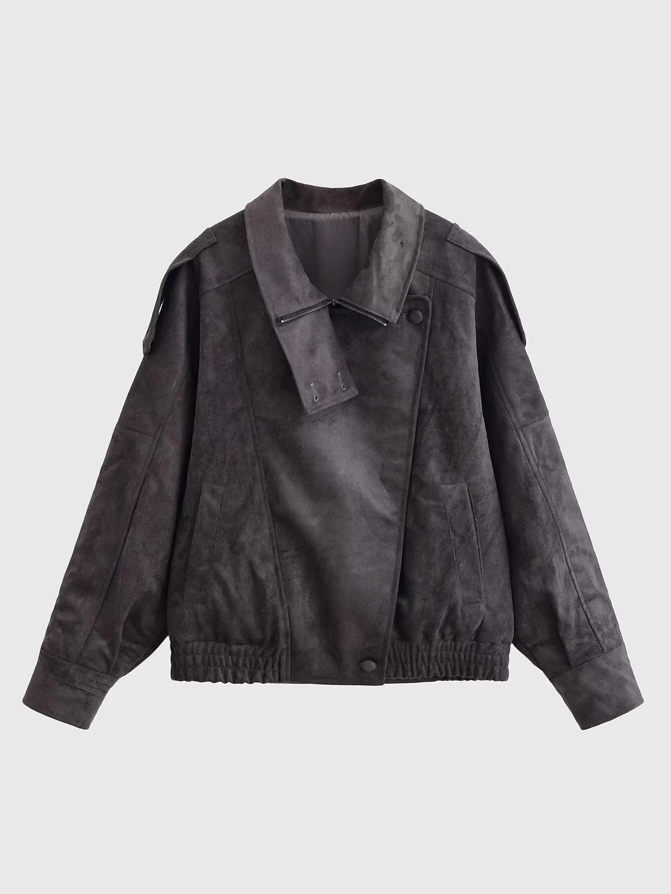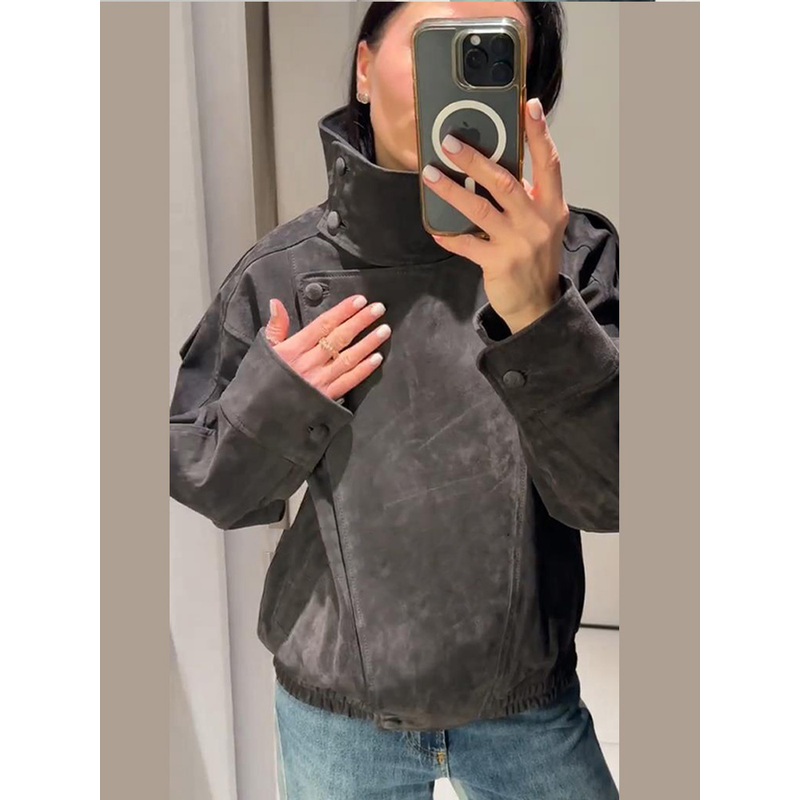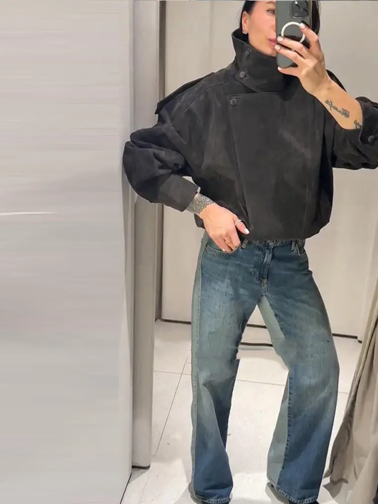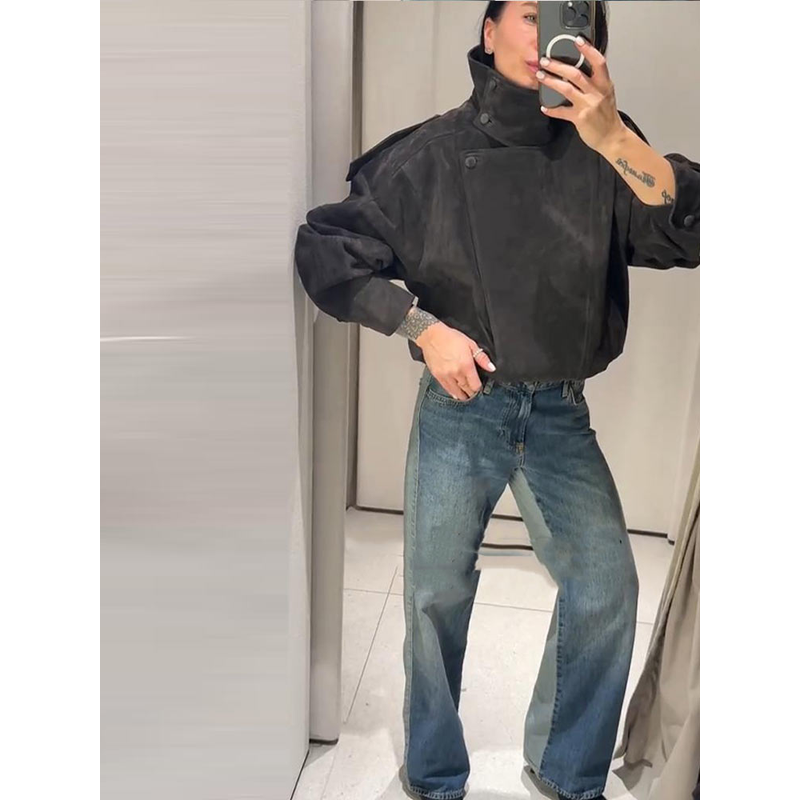 Asymmetric Stand Collar + Snap Button Closure, Blending Minimalism with Functional Styling